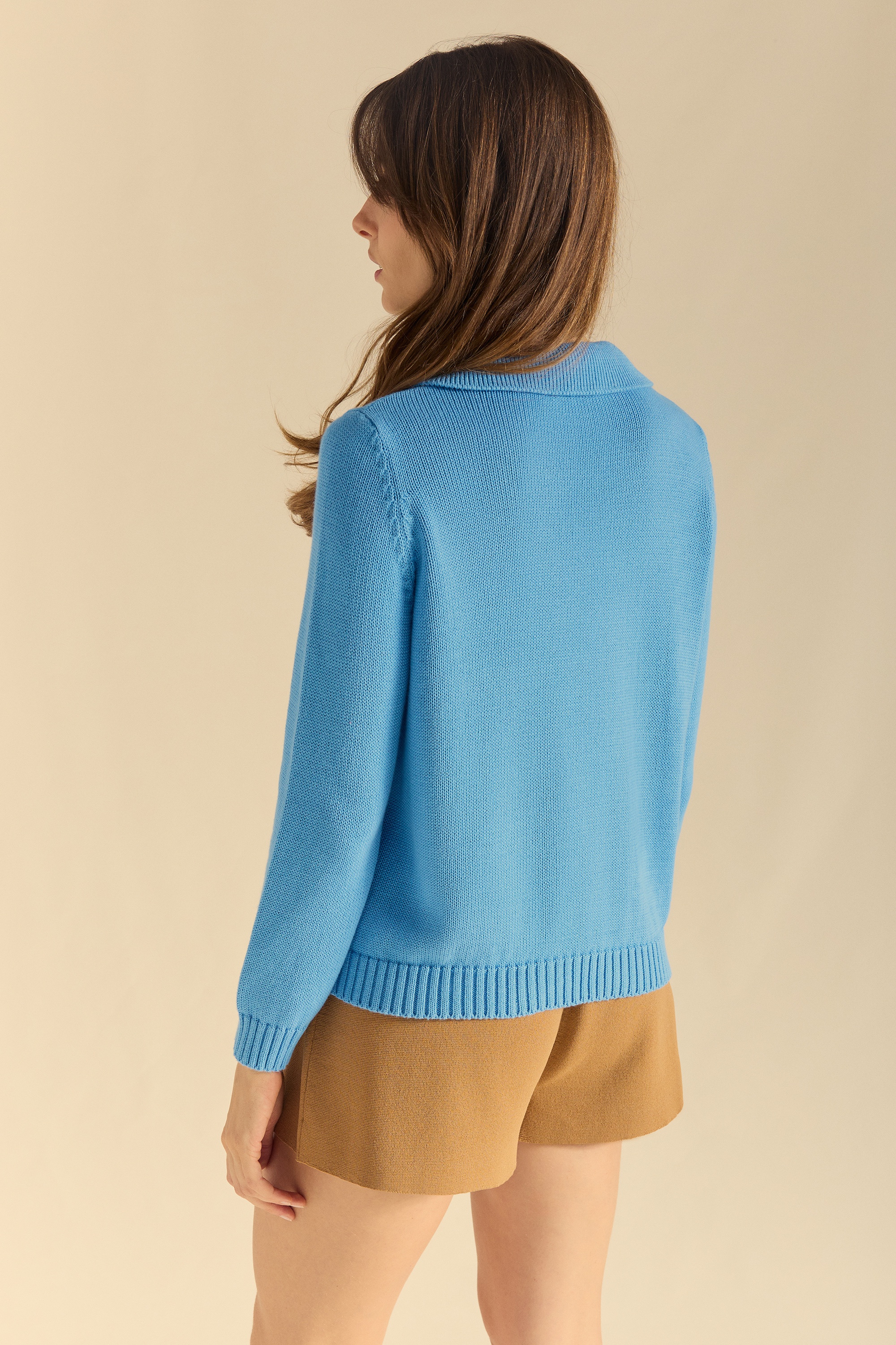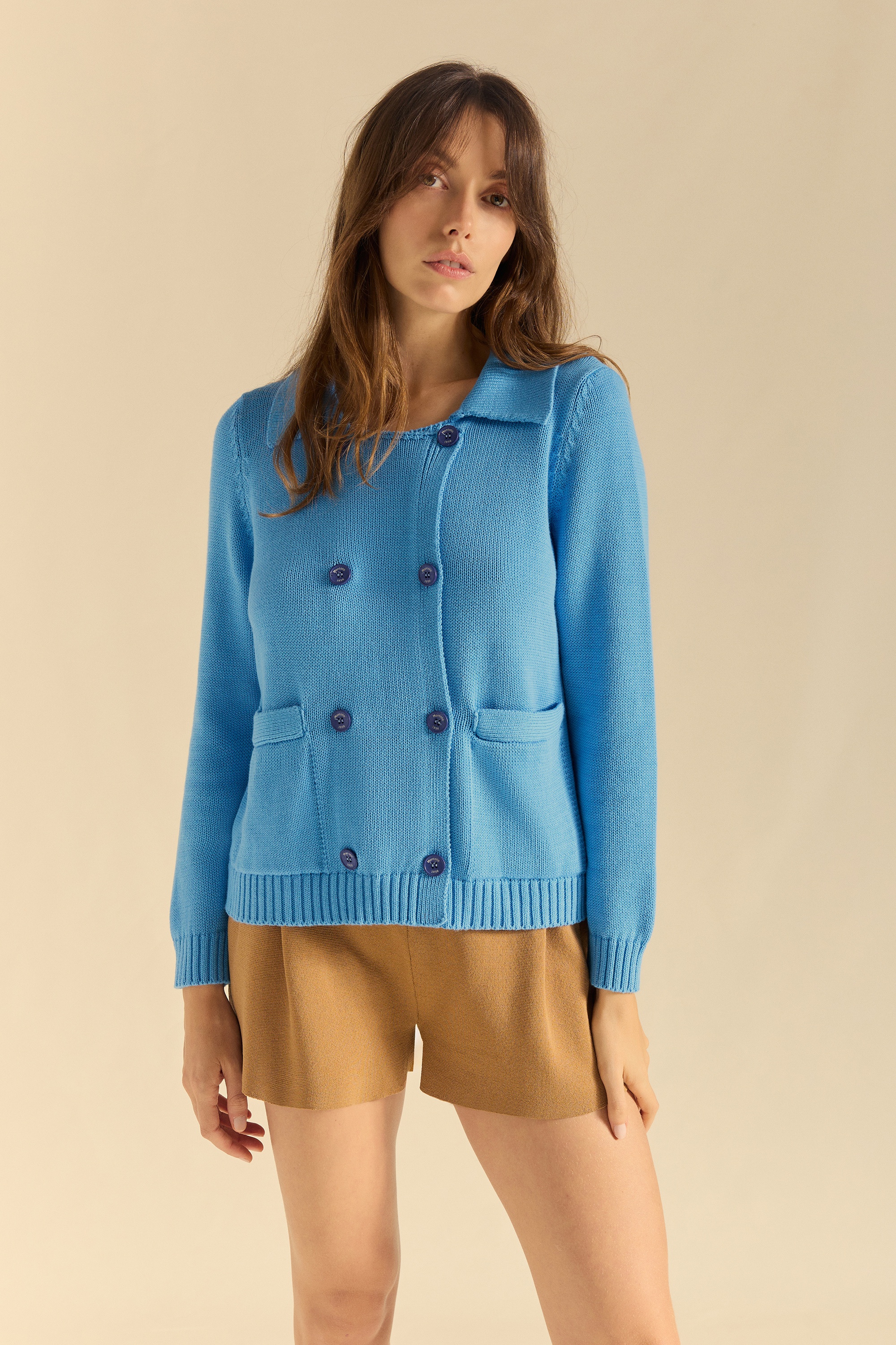 Cotton tunic with set-in sleeves. Lapel collar and double-button placket. Ribbed cuffs and hem.