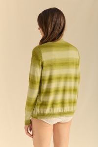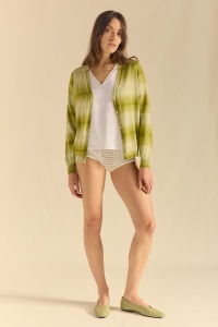Chaqueta de punto en pico y manga pegada. Hilo de algodón estampado. Bajos y puños acanalados. Botón de pastilla a tono.